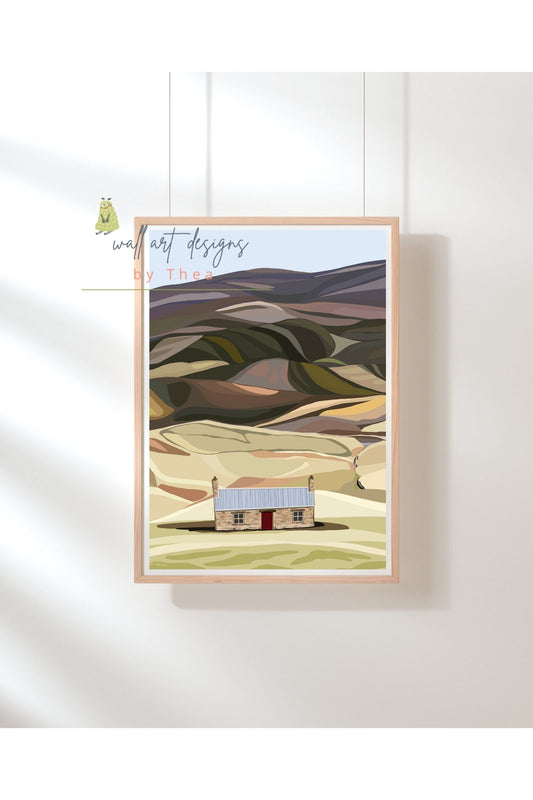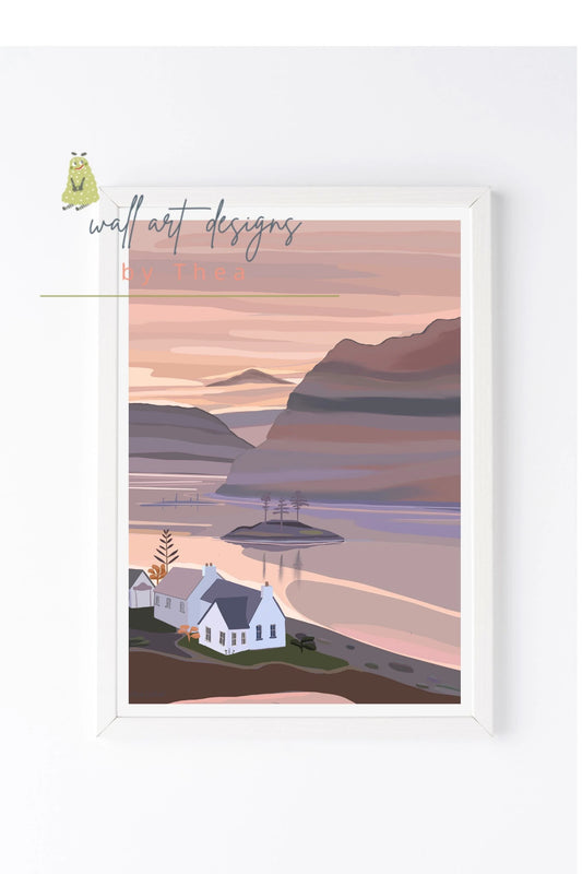 A3 Pink House at Loch Glass. (A3 size) gallery quality print. Unframed.