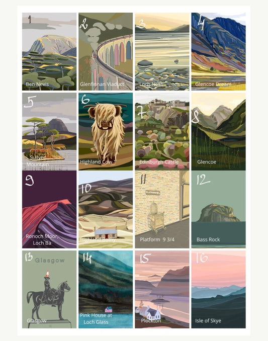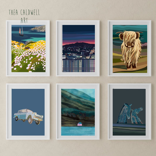 10 x Scottish themed greeting cards, A6 folded, with brown paper envelopes, Scotland on Canvas series, Thea Caldwell Art