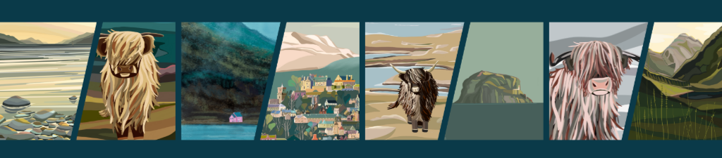 10 x Scottish themed greeting cards, A6 folded, with brown paper envelopes, Scotland on Canvas series, Thea Caldwell Art