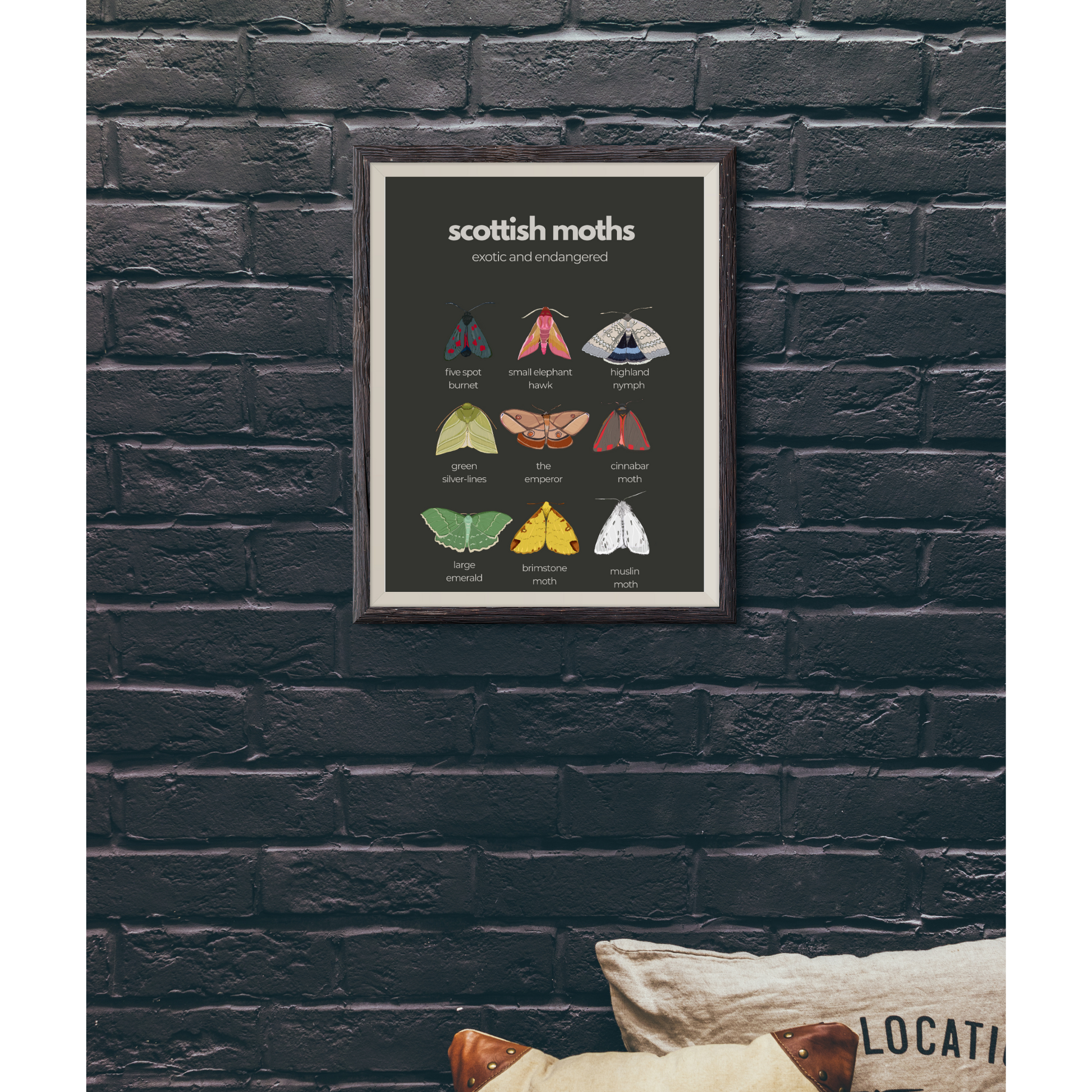 A3 “ Scottish Moths “ Scottish endangered Moth species, wild life protection and care, gallery quality card print, unframed, ready to be loved and framed.